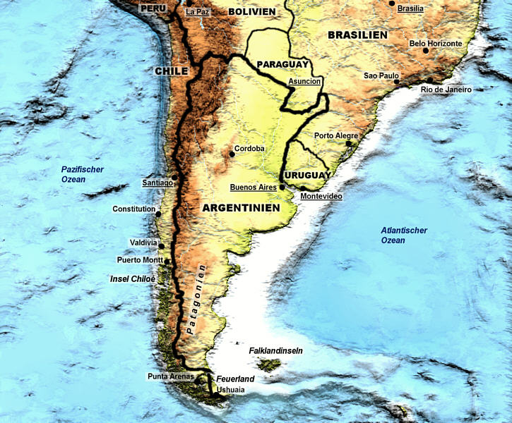 | Patagonien und Feuerland 2006 Landkarten und Reiseroute |